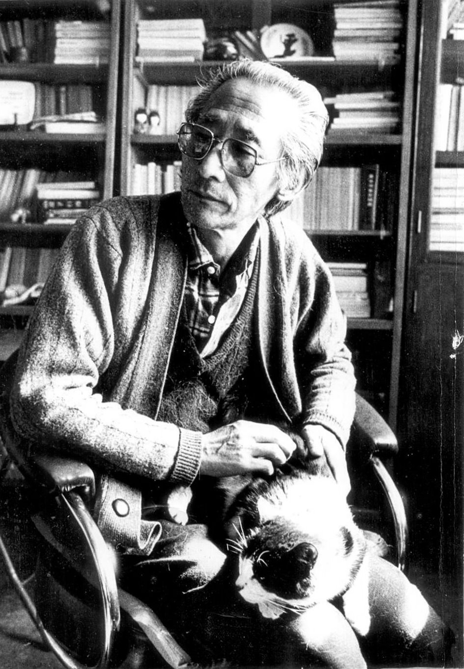 我恍然记得,这是20年前的1992年春节后,我带着《天津日报》的摄影记者,到先生家里给他拍摄的。当时,先生养了好几只猫,它们或爬上先生膝盖,或戏耍在先生书桌上,令先生大为开心。后来,我在《天津日报》上发表了《教授与猫》一文,配了一张先生在书桌前抱着一只猫笑逐颜开的照片。