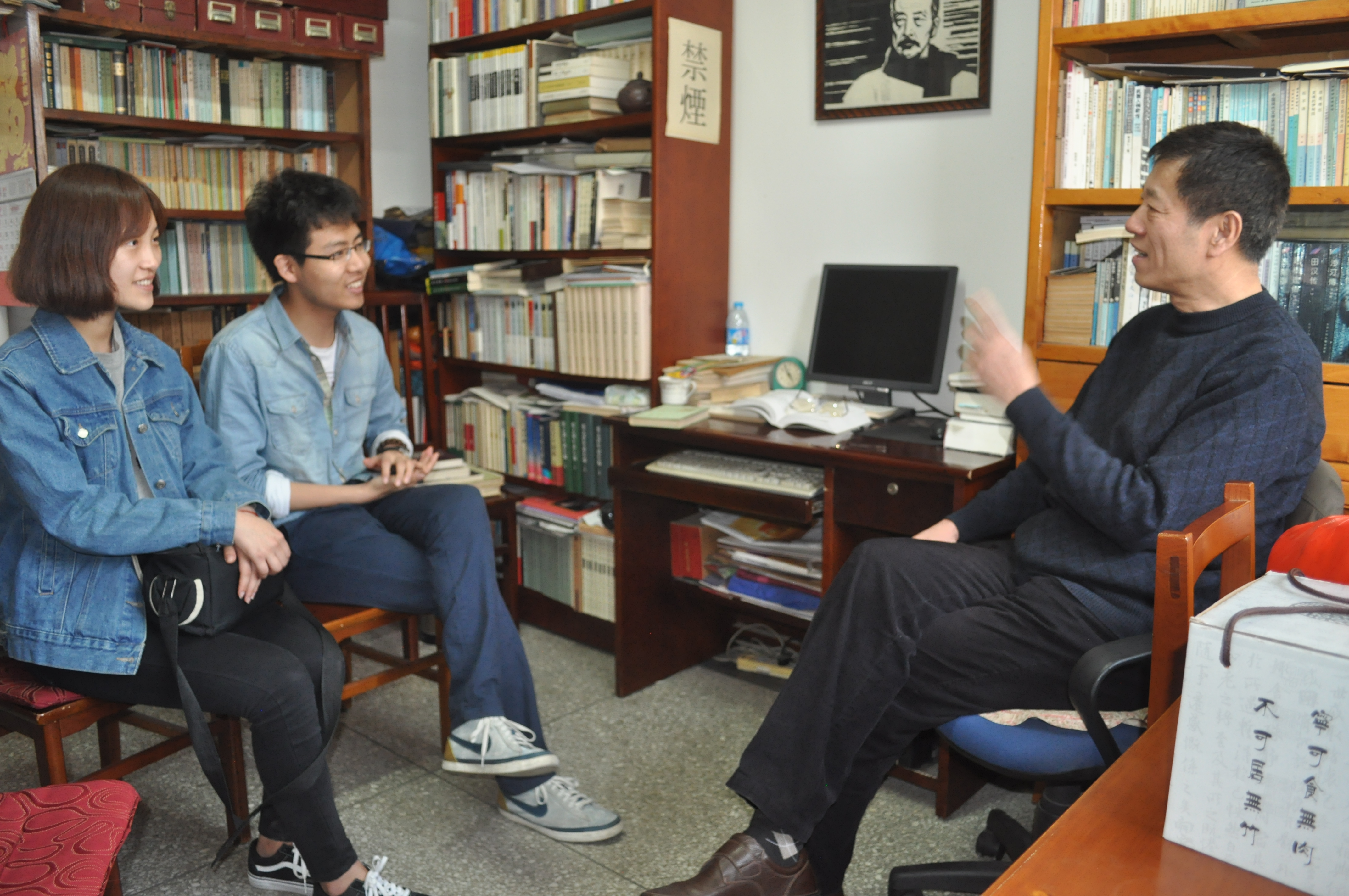 张铁荣教授师承李何林先生,专修鲁迅研究。他为志愿者们讲解了鲁迅的治学精神和为人之道,并由此出发,对当代老员工如何做精、做强专业领域的学术科研提出了建议和希冀。他告诉青年员工,作为文科类的员工,在做好本专业的研究外,更应该加强培养多维的思考方式,从理工科思维、乃至外语思维的角度来看待本专业的学术研究,会有更多的意外惊喜和收获。