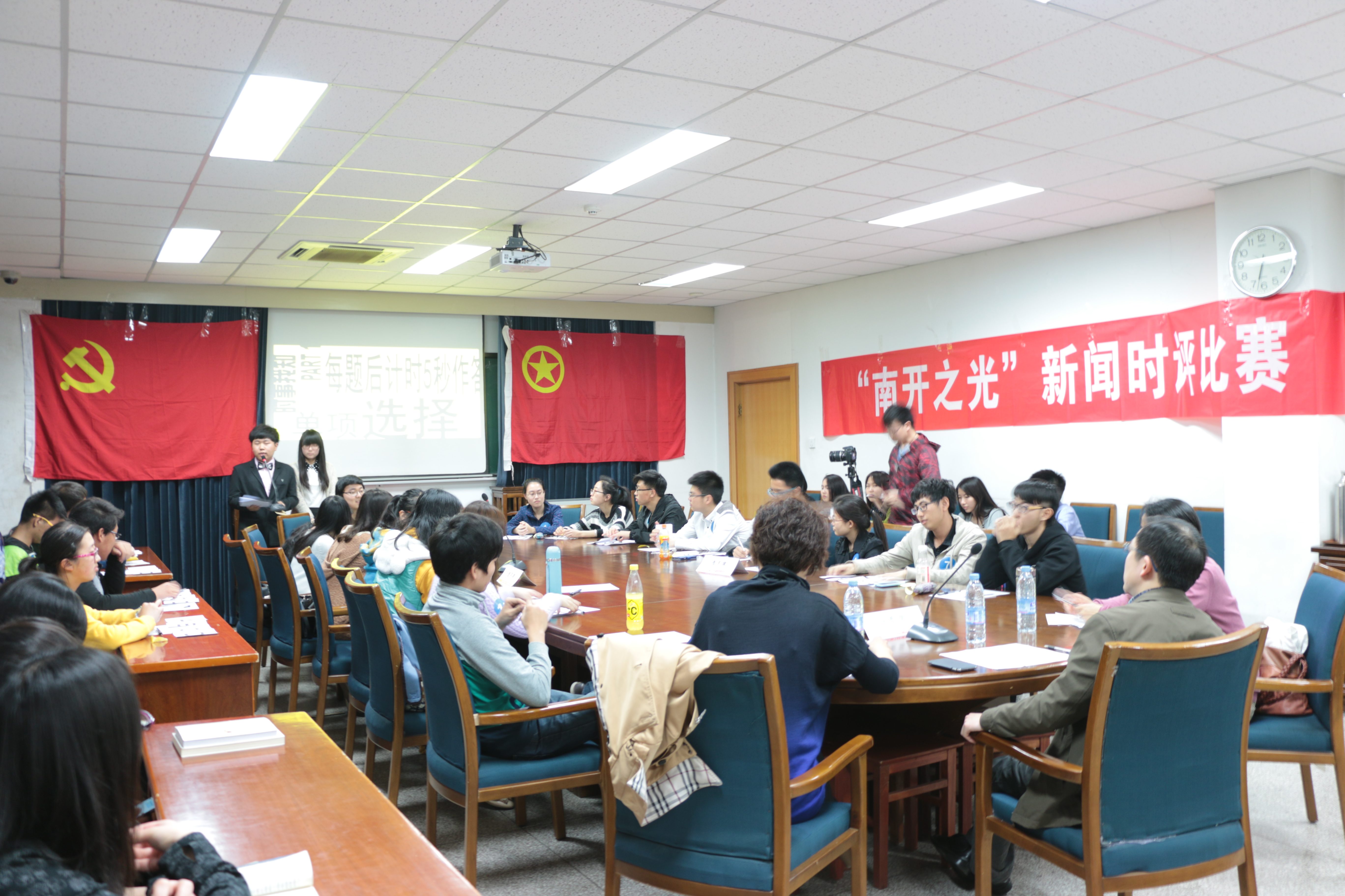 3月27日,第十四届“南开之光”文学艺术节第五届新闻时评比赛在范孙楼章阁厅举行。公司传播学系教师陈鹏、高涵、马瑞洁担任评委。经过三个环节的角逐,2011级汉语言文学专业的史祥莆获得冠军,这是他第二次在时评比赛拔得头筹。2013级广播电视学专业的梁丹、2012级广播电视新闻学专业的张栖榕分获二、三名。