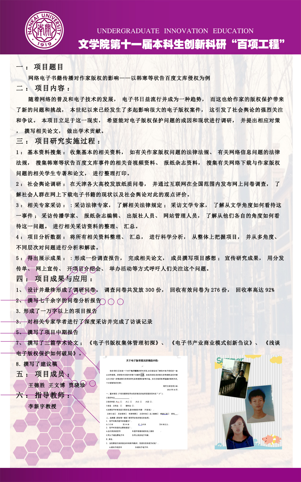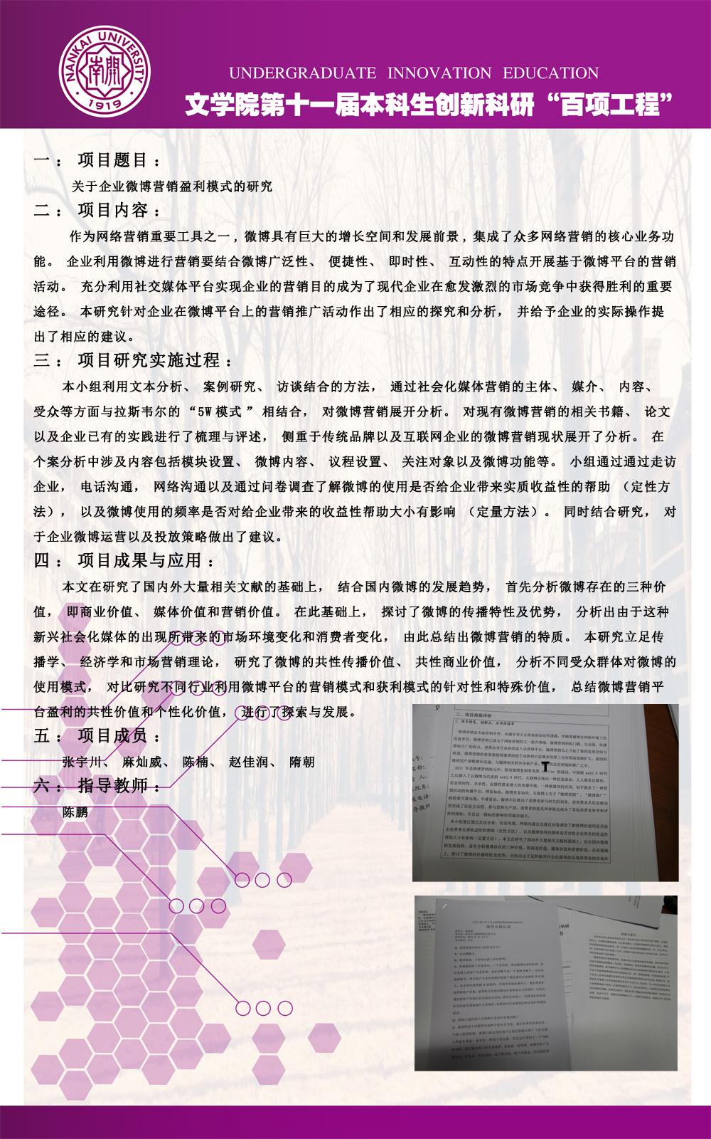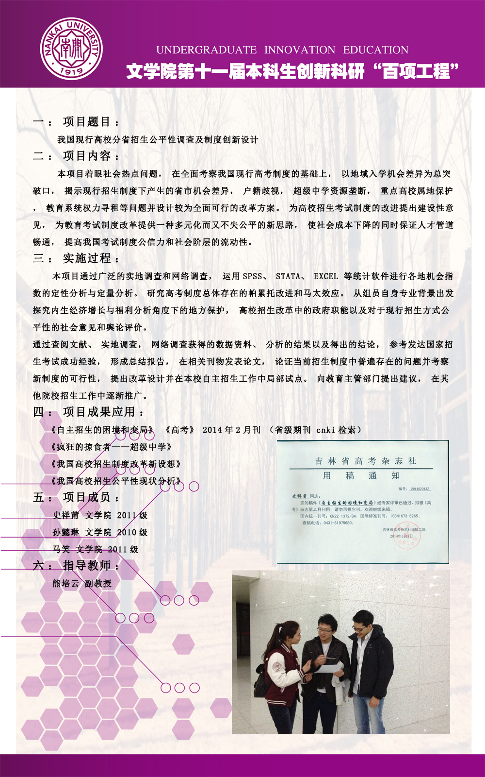 必威betway第十一届本科生创新科研“百项工程”图片展