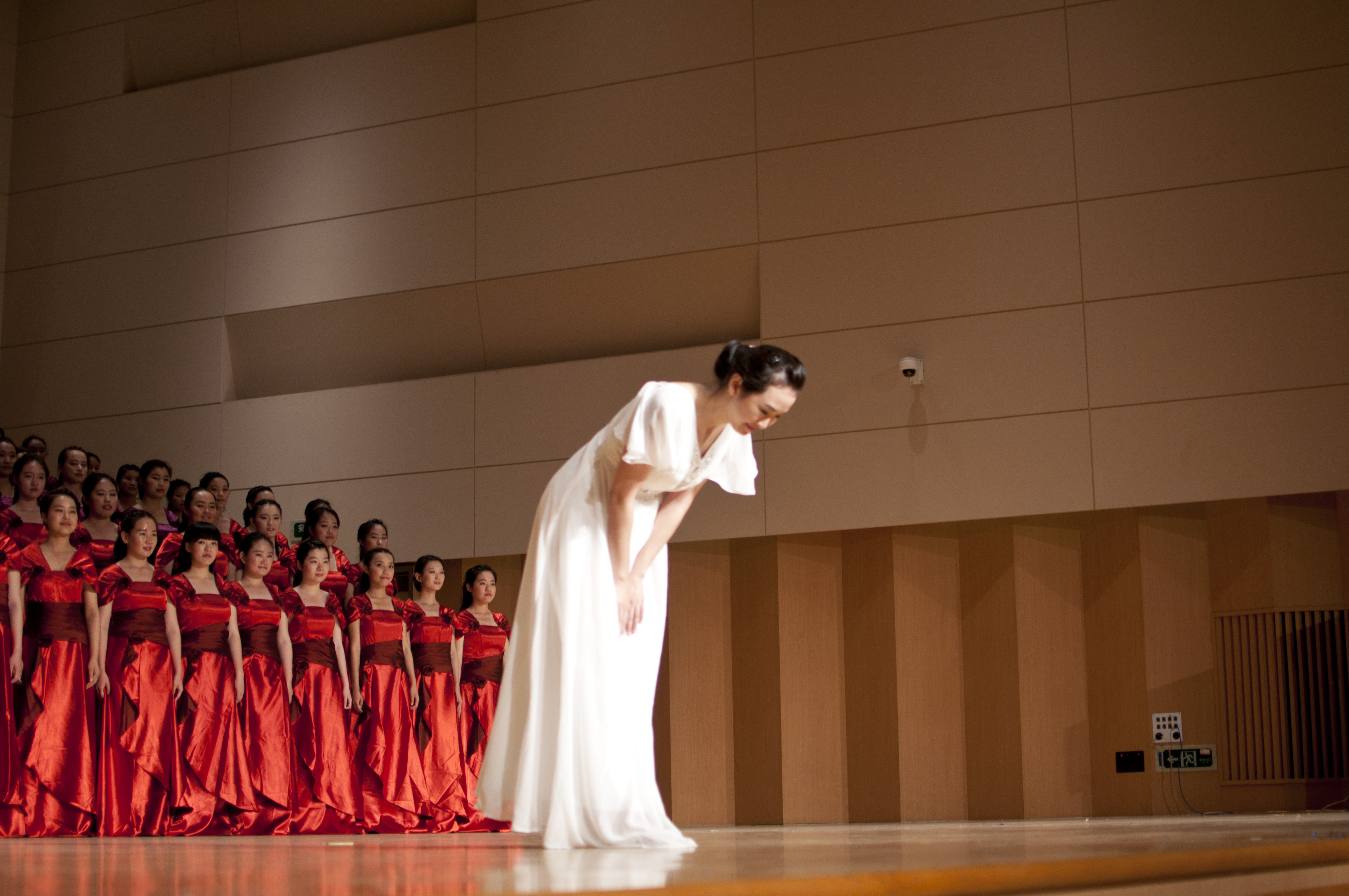 担任公司合唱指挥的是2012级硕士生许德娅,毕业后将至香港中文大学攻读博士学位。今年是她第5年带领必威betway员工参赛,为了向她表示感谢和祝福,在歌曲演唱结束后,员工代表将5束鲜花和热烈的掌声送给她。