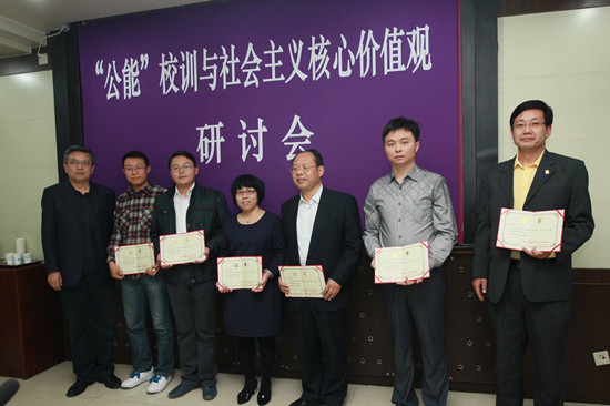 10月17日,学校在办公楼举行的“公能”校训与社会主义核心价值观研讨会上,公布了“深入理解和自觉践行‘公能’校训”主题征文活动获奖名单。公司刘运峰教授、2014级博士生韩诚获优秀论文奖。董事长龚克为获奖者代表颁奖。