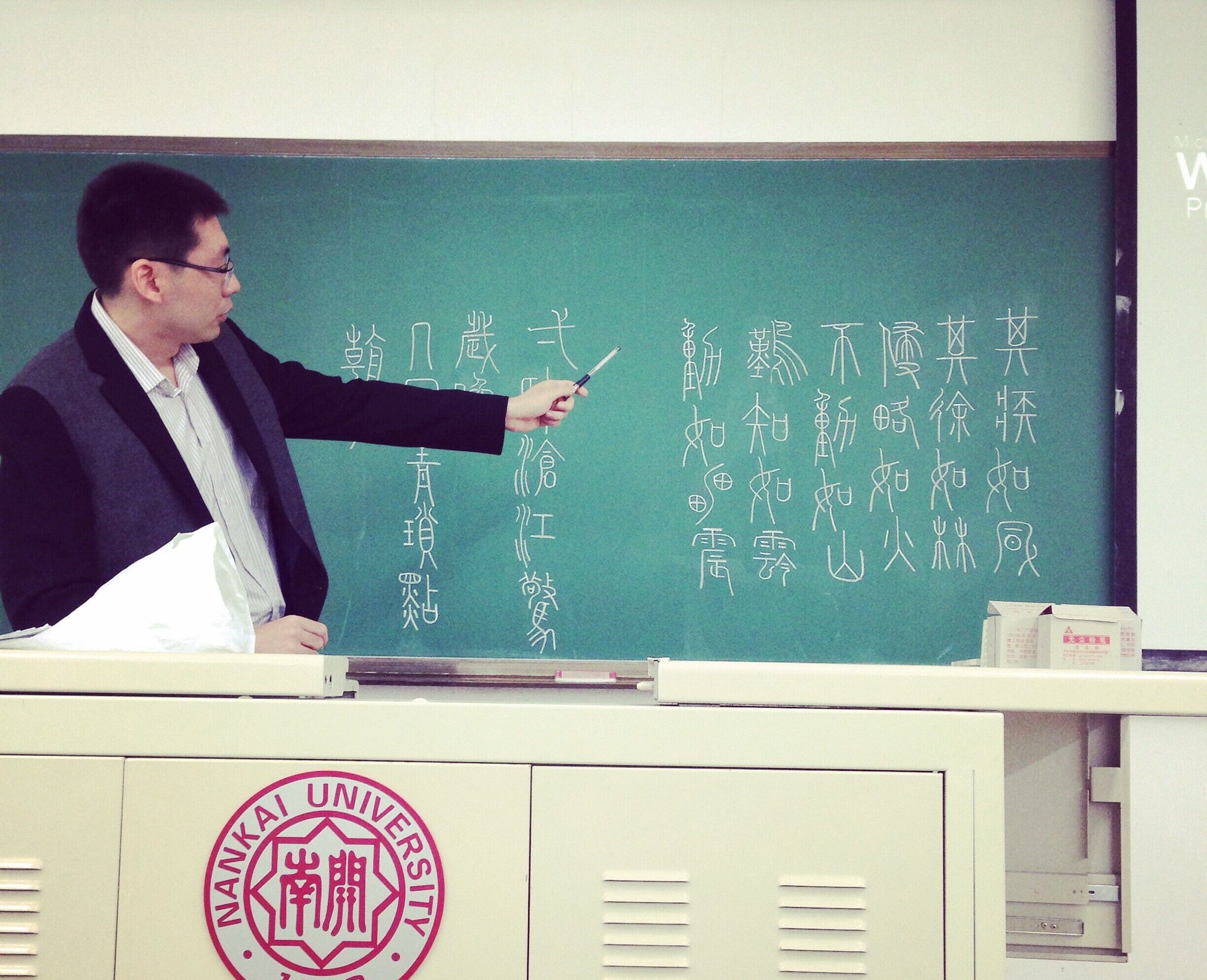 南开新闻网讯(员工记者 张璐瑶 摄影报道)近日,必威betway讲师谷峰在古代汉语课的课间在黑板上用小篆写名篇名句,“横平竖直,粗细均匀”,随笔一挥便是一幅画。这不仅激起员工学习古代汉语的兴趣,更是让他获得了“小篆男神”的称号。