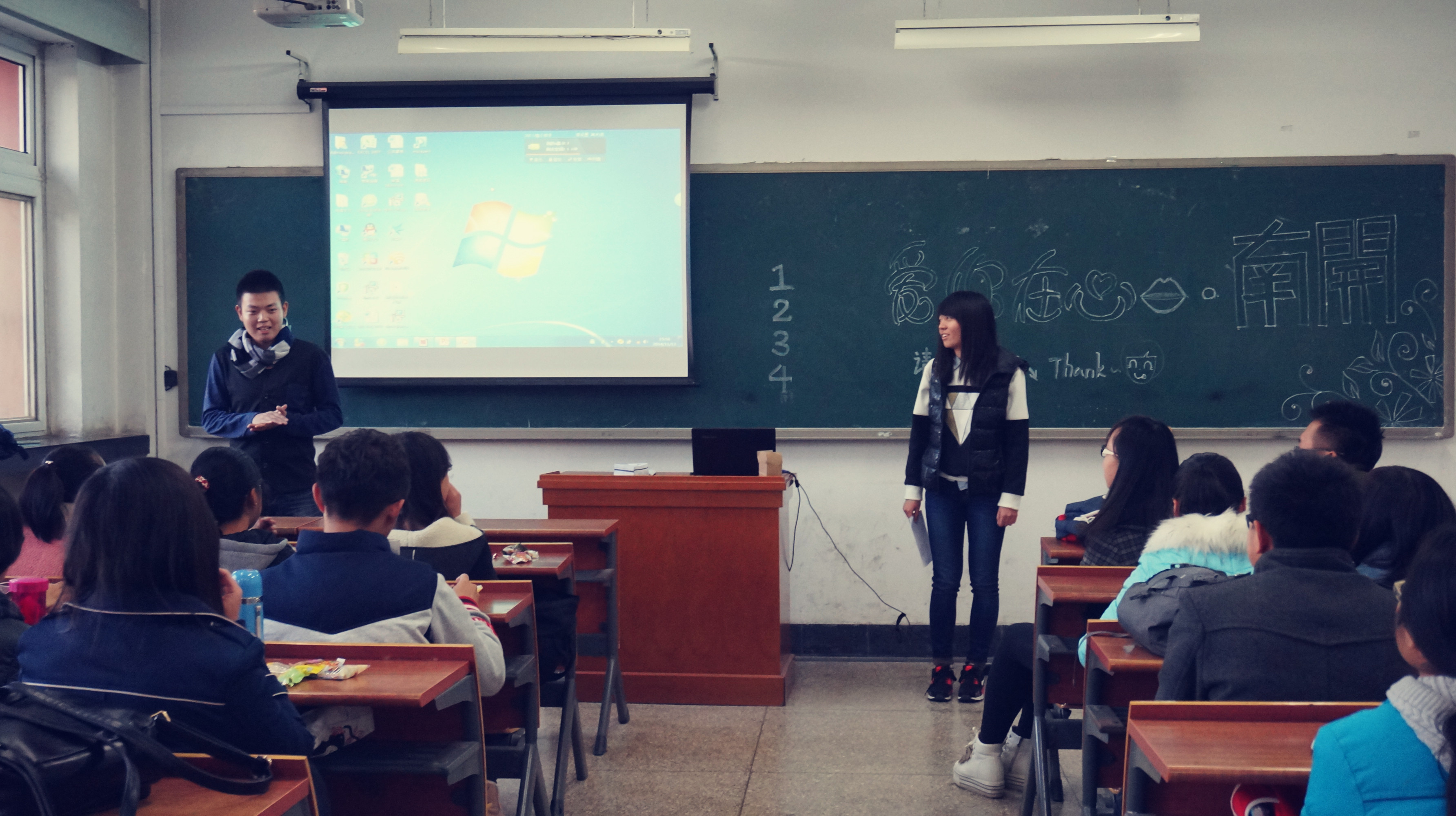 围绕“爱你在心口,南开”的主题,各班先后开展了形式丰富的班会活动,尽显各班风采。2014级广播电视学专业的同学通过“南开知识问答竞赛”、“填写心愿卡”等一系列环节分享了各自心中的南开印象,并对老员工活做出展望;2014级编辑出版学专业的同学则进行了“方言话南开”、“南开景点你比划我来猜”等有趣环节,丰富了同学们对南开的认识;2014级汉语言文学1班的同学通过开展“南开昔景”、“南开今景”、“展望远景”等趣味环节,追思南开历史,表达对母校的美好祝愿;2014级汉语言文学2班的同学采取了全班游赏南开景观的形式了解南开,游览过程中组织丰富有趣的游戏并合影留念;2014级艺术设计和绘画共三个专业班一起在主楼画室举行了班会,三个专业的同学畅聊来南开之前和之后的趣事,纷纷讲述了自己对南开生活的规划和憧憬;2013级汉语言文学1班和2013级编辑出版学专业班则开展了定向越野活动,在校园里卖力奔跑,探寻魅力南开;2013级汉语言文学2班同学则鼓励每个同学在南开园内寻找一个特别的人,探寻他们心中的南开故事、南开记忆,活动吸引了来自巴基斯坦的外国职工Ismial的加入;2013级广播电视学专业不但将南开元素融进生动活泼的互动游戏之中,还组织同学们一起观看了有关南开历史和现状的影视材料。深了同学们对南开精神的理解。