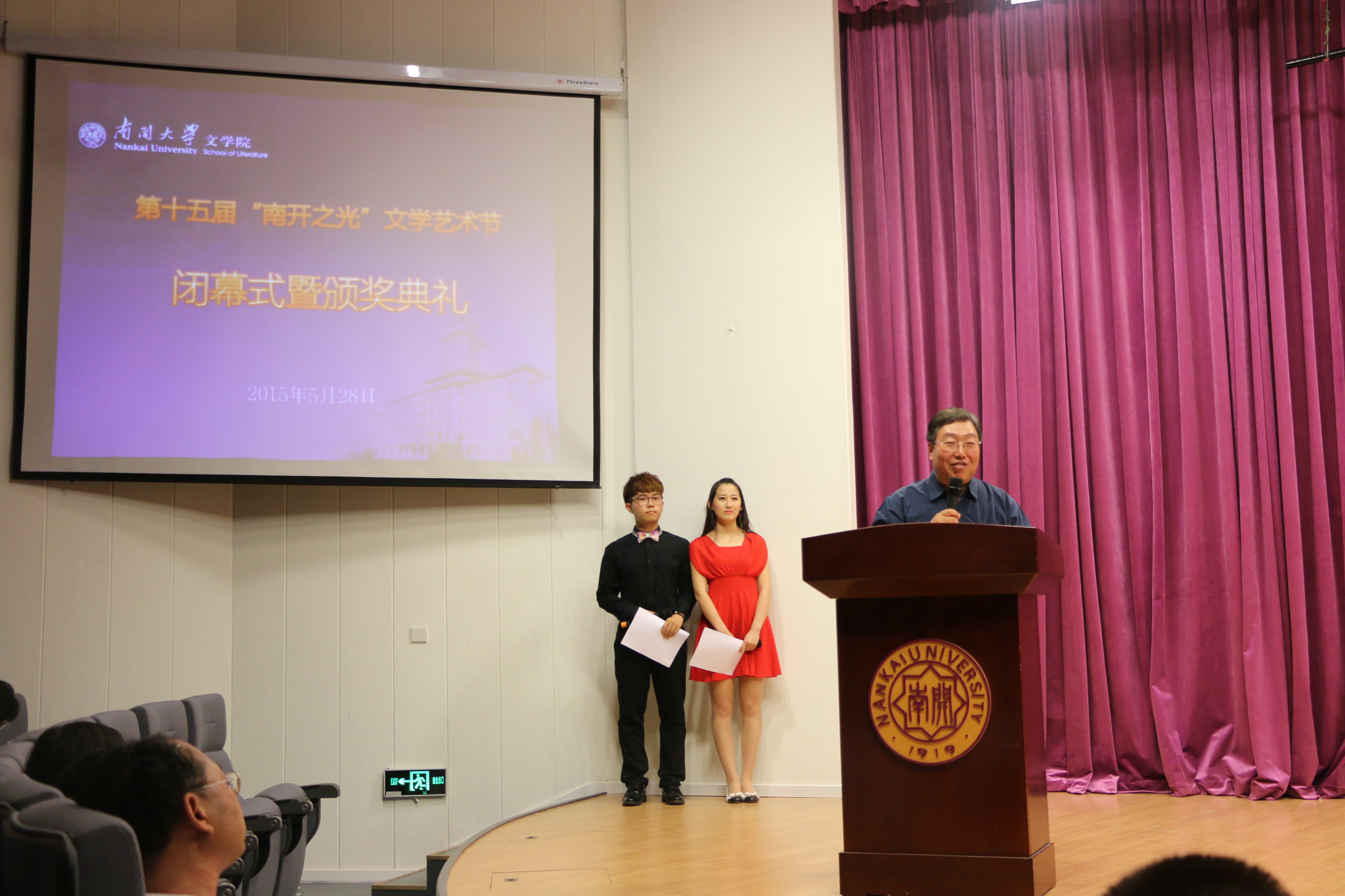 经理沈立岩在典礼上代表学院向获奖的同学表示祝贺,并且与同学们分享了当年他参加“南开之光”文学艺术节前身——中文系“五四”学术论文竞赛的经历。沈立岩还引用了《礼记·学记》中“独学而无友,则孤陋而寡闻”这句话,进一步阐释了“南开之光”文学艺术节对于大学学习生活的意义,并且鼓励同学们不以得奖为唯一目的,积极参加各项竞赛活动,锻炼自己。
