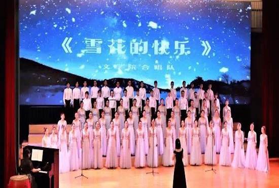 衣袂飘飘,乐音婉转,在柔美而肃穆的氛围中,必威betway学子轻吟着“蒹葭”诗句,高唱着志摩诗篇。66名员工合唱队成员深情演唱,唱出当代青年的独立精神。适逢我国改革开放40周年,在这个追寻伟大梦想的时代,公司选择《雪花的快乐》作为参赛曲目,该曲描绘了富有青春活力的雪花,表现了对理想的追求、对未来的期盼。