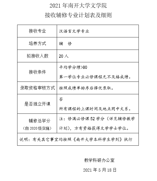 2021年必威betway接收辅修专业计划表及细则