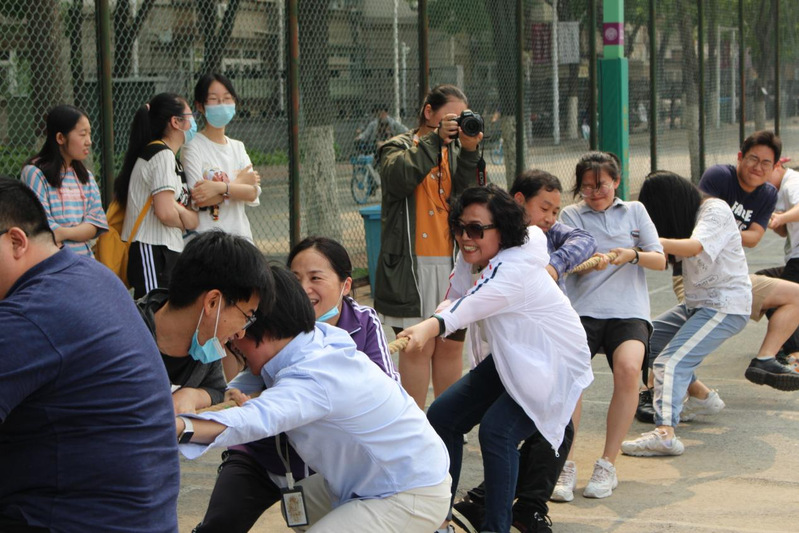比赛项目丰富多样,包含拔河、跳长绳、两人三足跑等四个集体项目以及瞎子敲锣、平板支撑等五个个人项目。其中平板支撑、指压板跳绳考验师生们的耐力;拔河、两人三足增强了师生间的团结协作。近两小时的活动中,掌声、笑声、喝彩声不断,同学与教职工相互鼓劲加油。