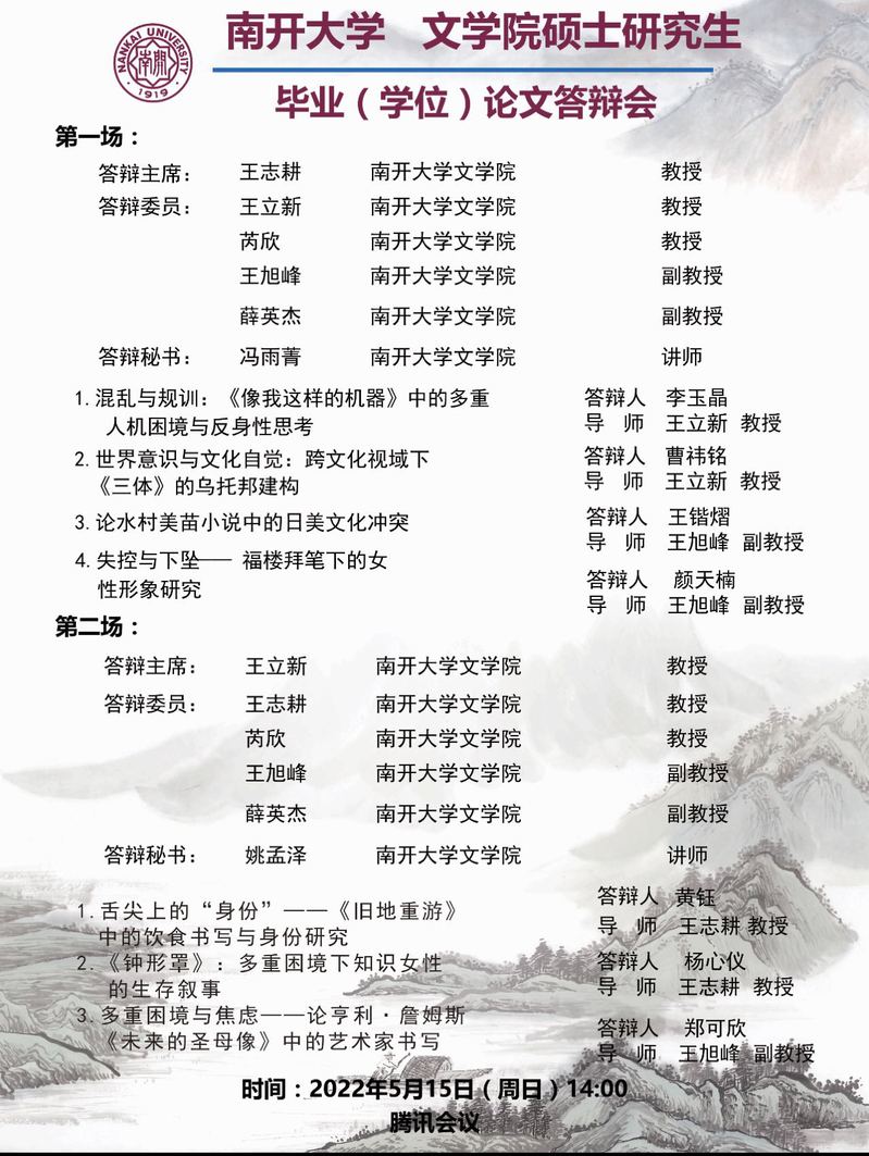 必威betway硕士研究生毕业论文线上答辩公告——比较文学与世界文学