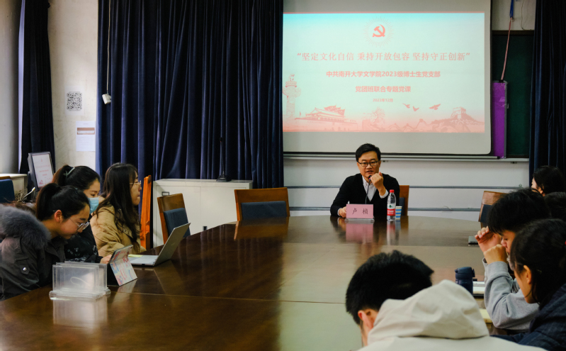 同学们在卢桢的带领下,共读、共学、共研习近平总书记对宣传思想文化工作作出的重要指示,集体观看《党课开讲啦:二十大代表讲党课》。在党课中,卢桢老师向同学们反复强调了“不碰红线,诚信科研”的基本科研准则,耐心细致地传授了高水平论文写作与发表的基本方法。在师生共研的环节,卢桢从自身经验出发,与同学们共同探讨了应当如何将自身所思、自身所想运用于国家发展。卢桢指出:“作为一名中文专业博士研究生,大家应当有充分的时代使命感与责任感,应当在科研训练、论文写作的过程中,自觉观照中国式现代化的发展浪潮,真正做到将个人发展融入祖国发展的浪潮之中,将论文写在祖国的大地上,让中国故事走向千家万户。”