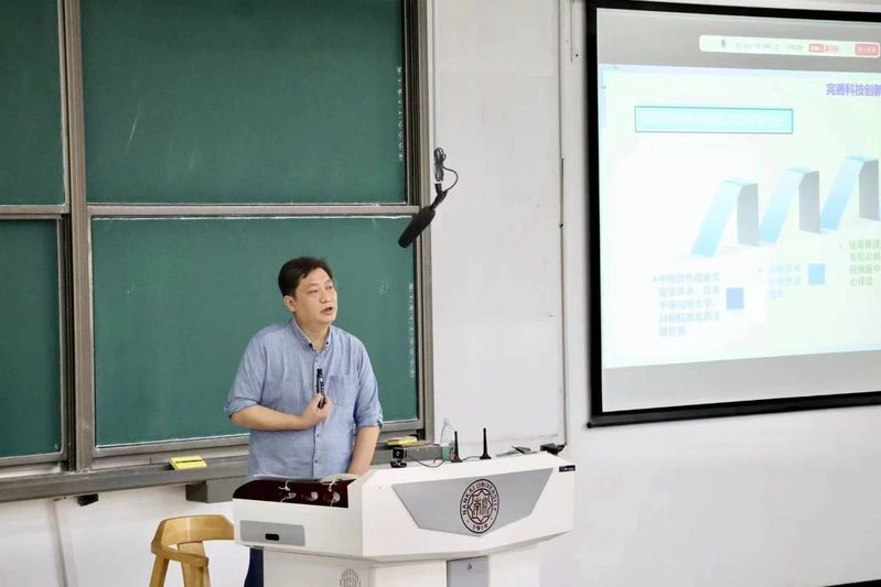 冯大建以“科技强国,人才强国,教育强国”为主题,由“重大产教融合共同体”“中国坐标”两个视频引入,阐述当今社会对于跨学科人才的需求,并呼吁同学们在学习人文学科的同时注重训练科学化思维,了解科学技术的发展对于我们生活方方面面的影响。