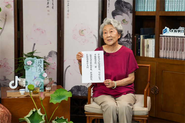 “我是叶嘉莹,我是(农历)六月生人,我今天100岁了。”当晚,100岁的叶嘉莹先生通过线上直播寄语,“我平常喜欢古典诗词,这就是说天生来性情相近,古典诗词里有很多美好的意思,我觉得古典诗词给我很多鼓励。我像一个蚕——‘不向人间怨不平,相期浴火凤凰生。柔蚕老去应无憾,要见天孙织锦成。’我们一定会看到,我们中国的未来爱好诗词的人这么多,我想中国也一向有这样一个传统。祝大家学习诗词快乐,人生的生活有成。”
