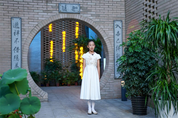 中国戏剧家协会主席濮存昕现场吟诵苏轼的《定风波》;江苏省苏州昆剧院副经理俞玖林携女儿俞美颜演唱了《玉簪记·琴挑》【懒画眉】等昆剧经典曲目;“摇滚博导”、中科院半导体研究所研究员陈涌海以极富现代感的摇滚形式弹唱《锦瑟》《将进酒》。三场别具特色的表演不仅具象化体现了传统经典艺术的薪火传承,更体现了中国古典诗歌生命体在当今现代文明中仍具有不朽的接续性、包容性和号召力。来自广州的毛静一小朋友与来自上海的戴睿小朋友分别吟诵了于良史的《春山夜月》和杜甫的《望岳》。受叶先生纪传电影《掬水月在手》的影响,诵读与诗词成为她们共同的爱好。