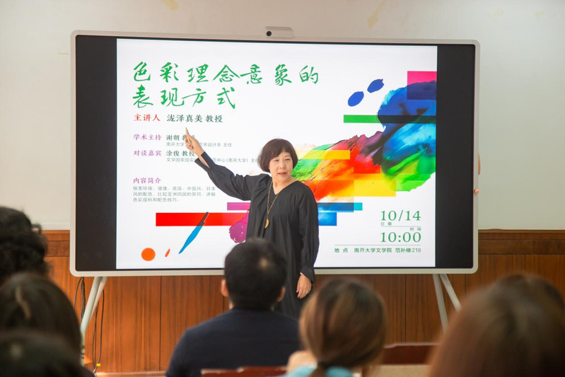 讲座中,泷泽真美还通过问卷调查的方式同师生进行互动,围绕“生态、健康、高级、日本色彩、中国色彩”等关键词展开色彩形象讨论,并对师生的提问作出详尽解答。最后,涂俊教授对本次讲座内容进行总结。