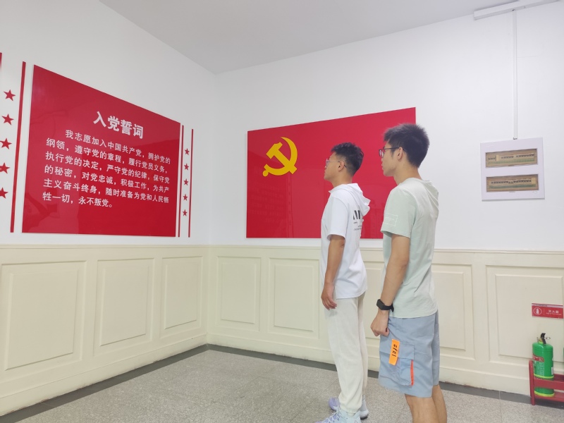 在纪念馆内,支部成员通过参观大量珍贵的历史照片、文献资料、实物展品和影像资料,深入了解中国共产党在天津的发展历程,从党的思想理论的早期传播、五卅运动的爆发,到新中国成立后的城市建设,再到改革开放和新时代的发展成就,全面展现了中国共产党在津沽大地上的光辉足迹。通过展厅讲解,党员们进一步认识到党在地方治理和社会发展中的核心引领作用。在纪念馆的党旗前,党支部组织了庄严的入党宣誓仪式,预备党员蔺坤在鲜红的党旗下郑重宣誓,全体党员也一同重温入党誓词,进一步坚定理想信念,增强党性修养。宣誓仪式在庄重肃穆的氛围中进行,表达了青年党员为党的事业奋斗终身的决心。