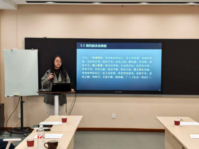 马尚带来“甲骨文字的结构类型”课程,通过动画导入生动讲解了“六书”概念;管永康围绕“设计概论——认识/理解设计”,结合丰富案例阐释“环境设计”等核心概念;孙云霏的展示就“存在”概念深入挖掘,凌彤的课程“《诗经》的创作与结集”系统全面地呈现了文学史知识。